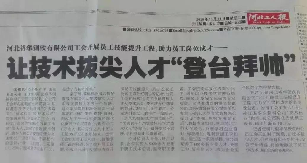 記者在裕華鋼鐵有限公司工會采訪時了解到,對技術拔尖人才,公司是有位子給位子,沒位子給待遇,有效地激發(fā)了員工學技術、搞創(chuàng)新的積極性。